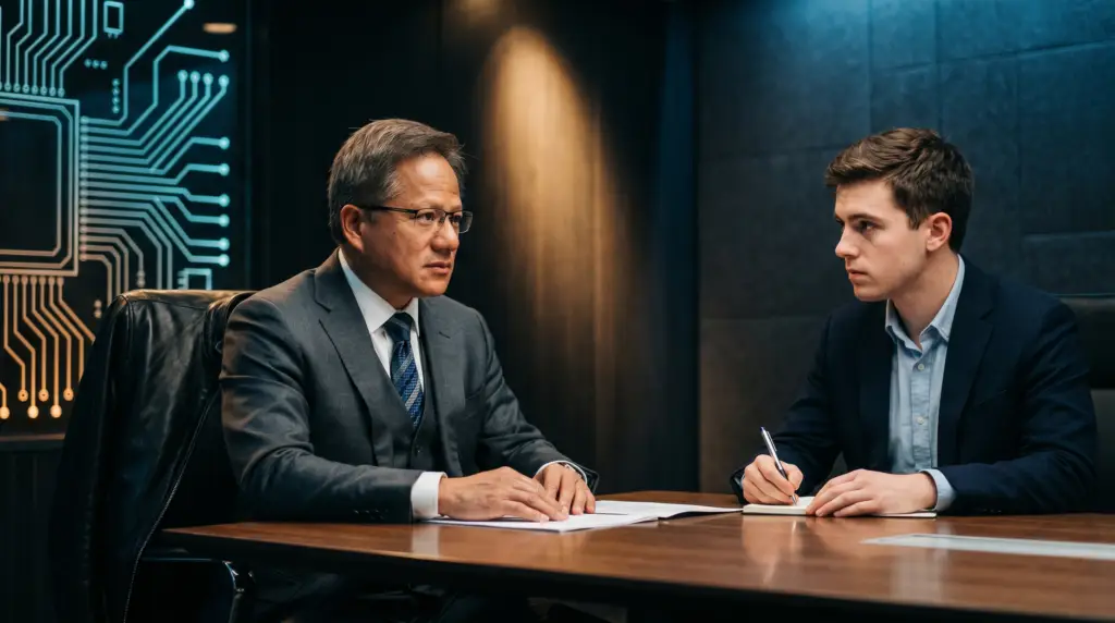 黄仁勋被30岁小伙问破防:一场40分钟的访谈,三句他本不该说的真心话